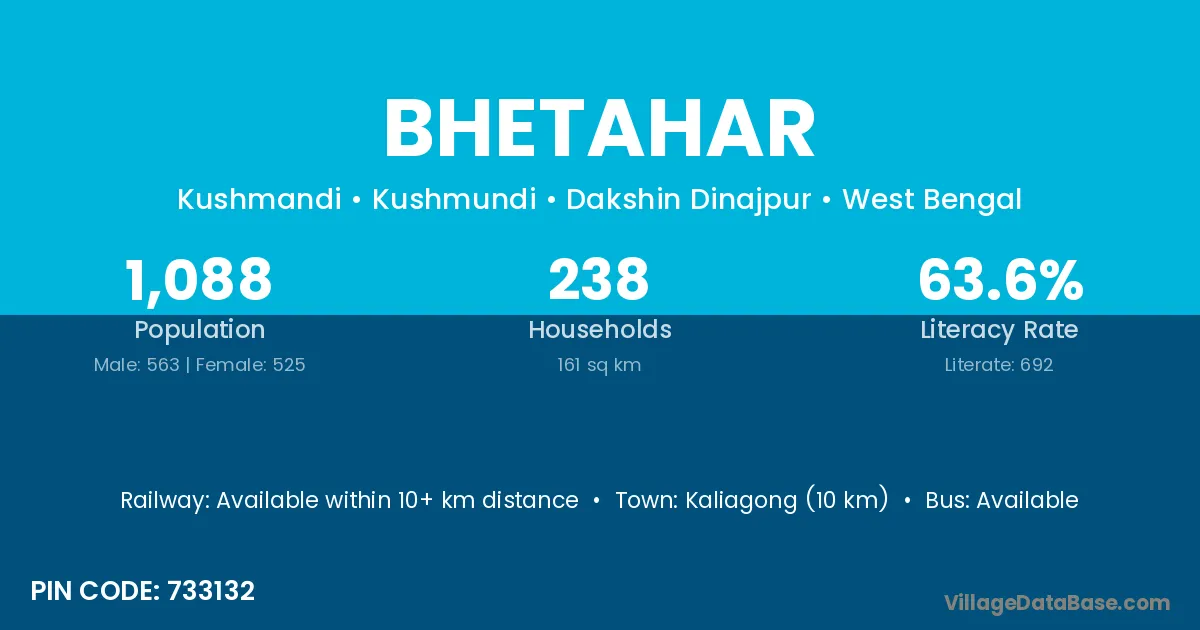 Kaliagong (10 km) is the nearest town to Bhetahar village for major economic activities and is located approximately 10 km away.