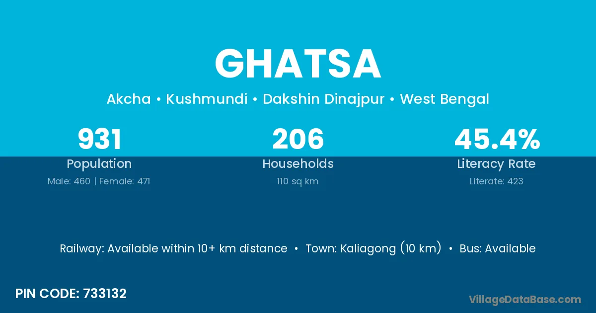 Ghatsa village is located in the Kushmundi Subdivision of the Dakshin Dinajpur district in West Bengal .