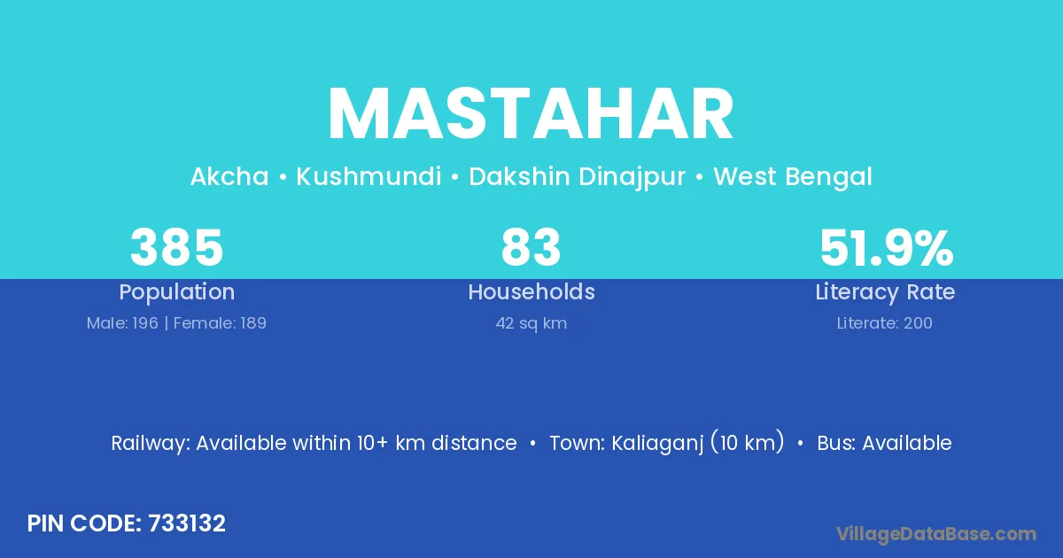 Kaliaganj (10 km) is the nearest town to Mastahar village for major economic activities and is located approximately 10 km away.