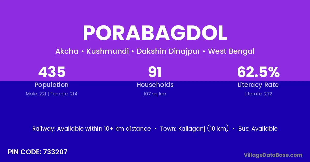 Kaliaganj (10 km) is the nearest town to Porabagdol village for major economic activities and is located approximately 10 km away.