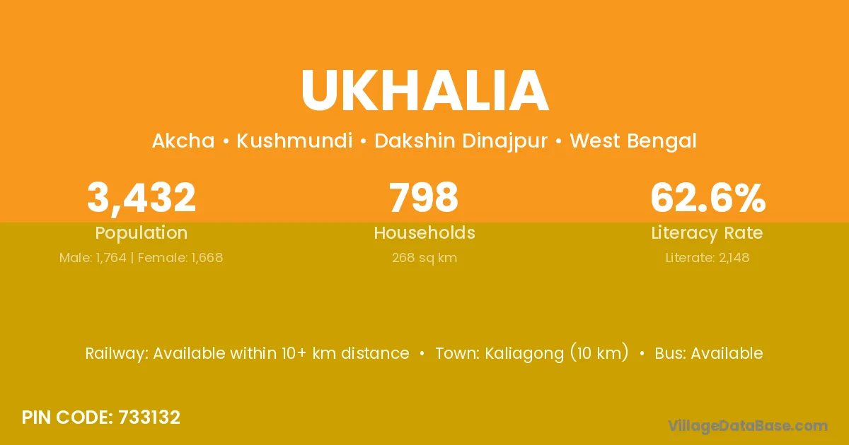 Kaliagong (10 km) is the nearest town to Ukhalia village for major economic activities and is located approximately 10 km away.