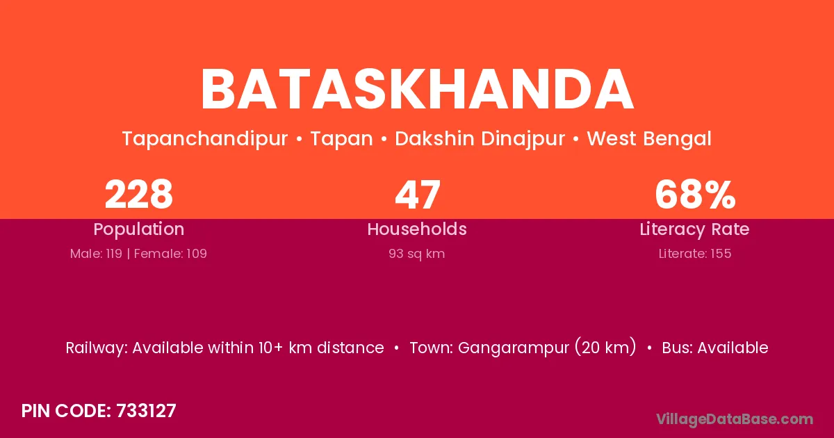 Gangarampur (20 km) is the nearest town to Bataskhanda village for major economic activities and is located approximately 20 km away.