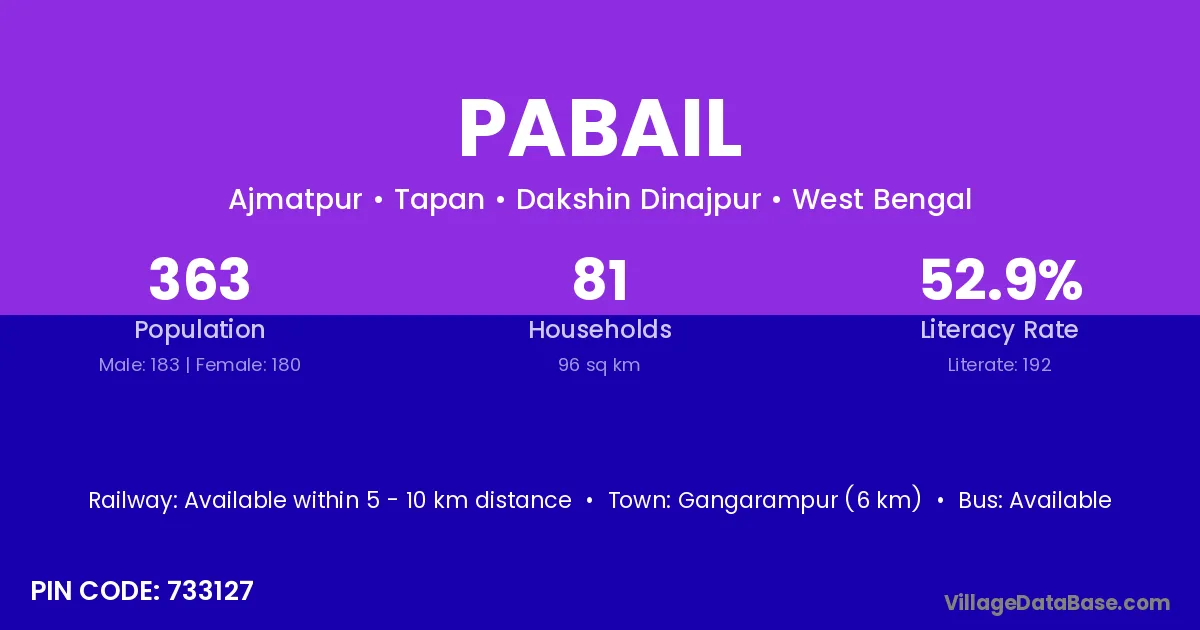 Gangarampur (6 km) is the nearest town to Pabail village for major economic activities and is located approximately 6 km away.