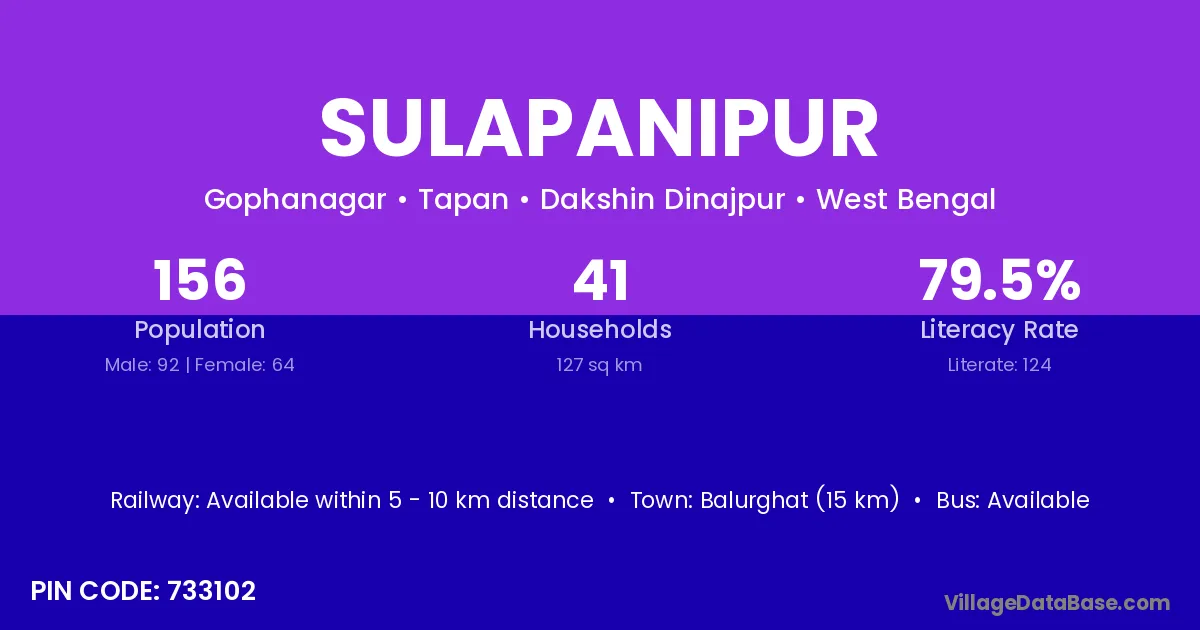 Balurghat (15 km) is the nearest town to Sulapanipur village for major economic activities and is located approximately 15 km away.