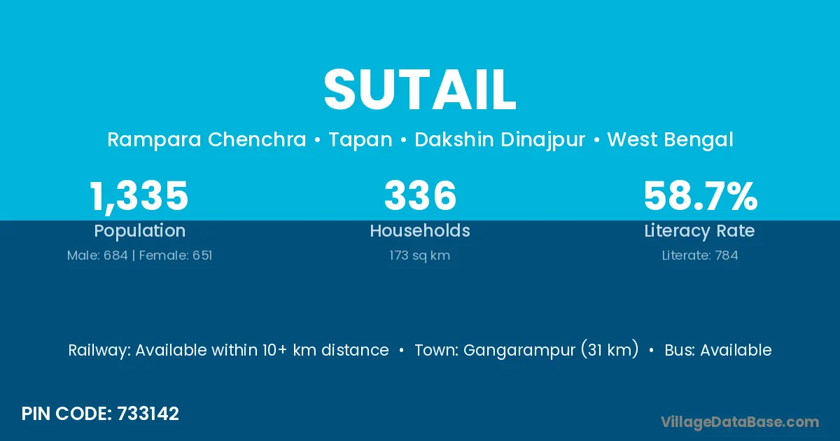 Gangarampur (31 km) is the nearest town to Sutail village for major economic activities and is located approximately 31 km away.