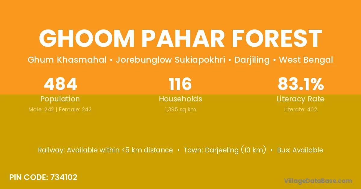Ghoom Pahar Forest village has a total population of 484 people, of which 242 are males and 242 are females.