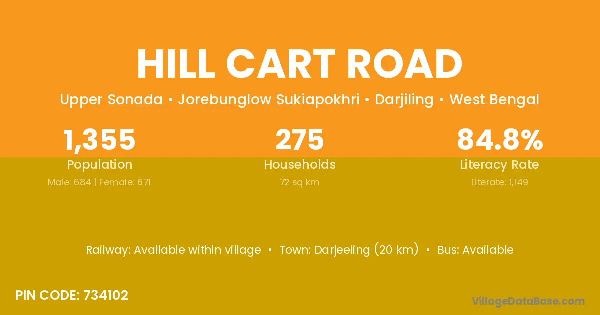 Hill Cart Road village has a total population of 1,355 people, of which 684 are males and 671 are females.