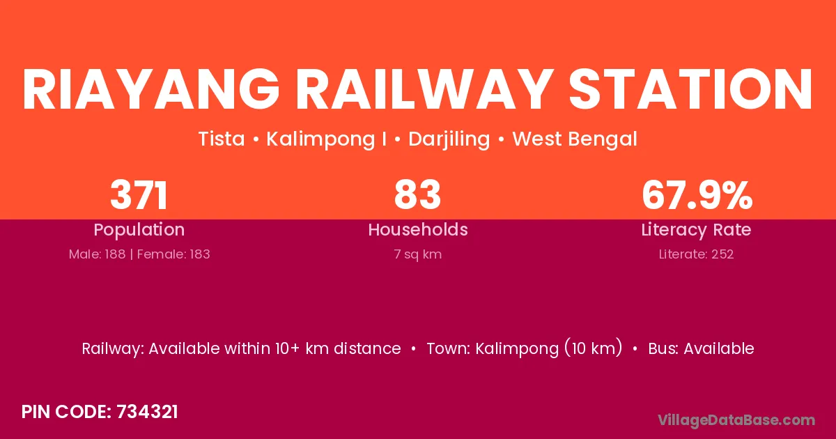 According to Census 2011 information, the village code of Riayang Railway Station village is 734321.