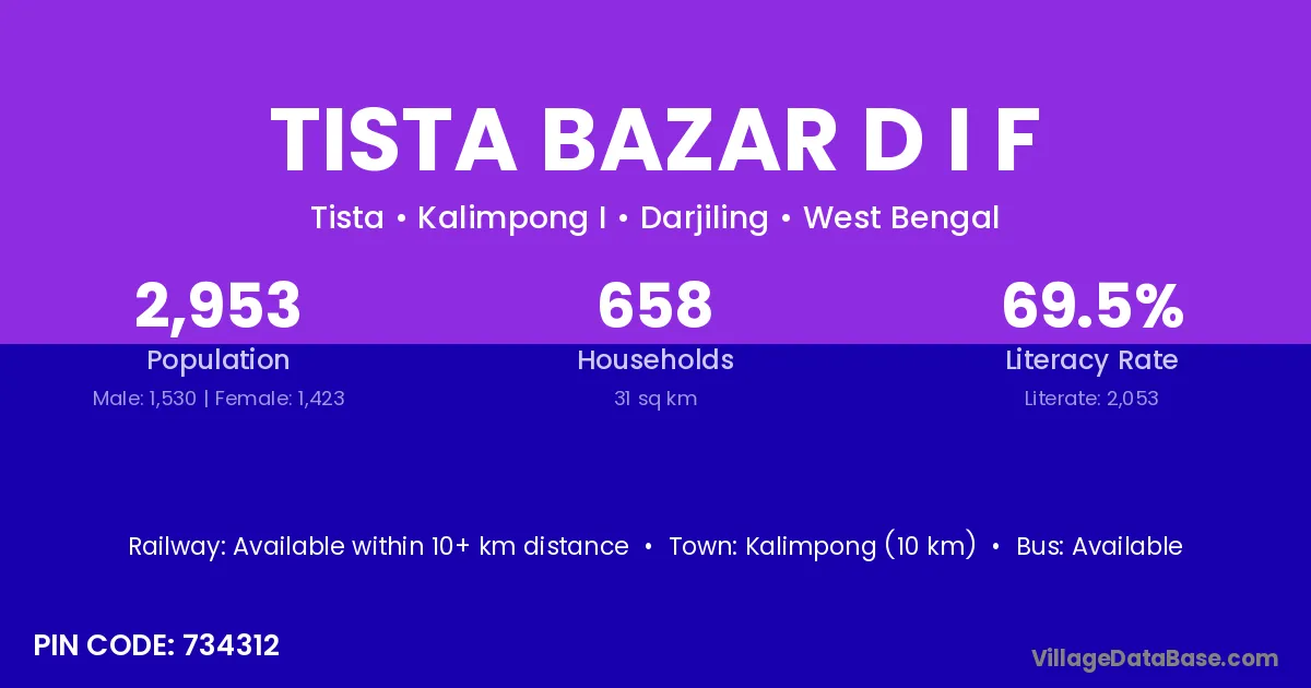 According to Census 2011 information, the village code of Tista Bazar D I F village is 734312.