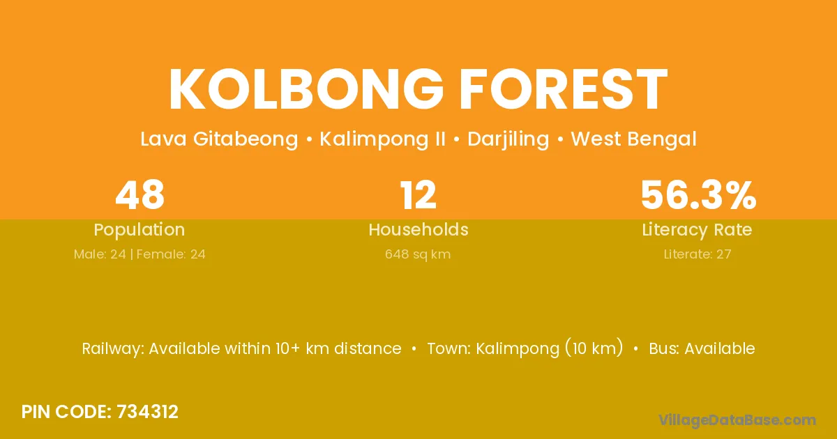 According to Census 2011 information, the village code of Kolbong Forest village is 734312.