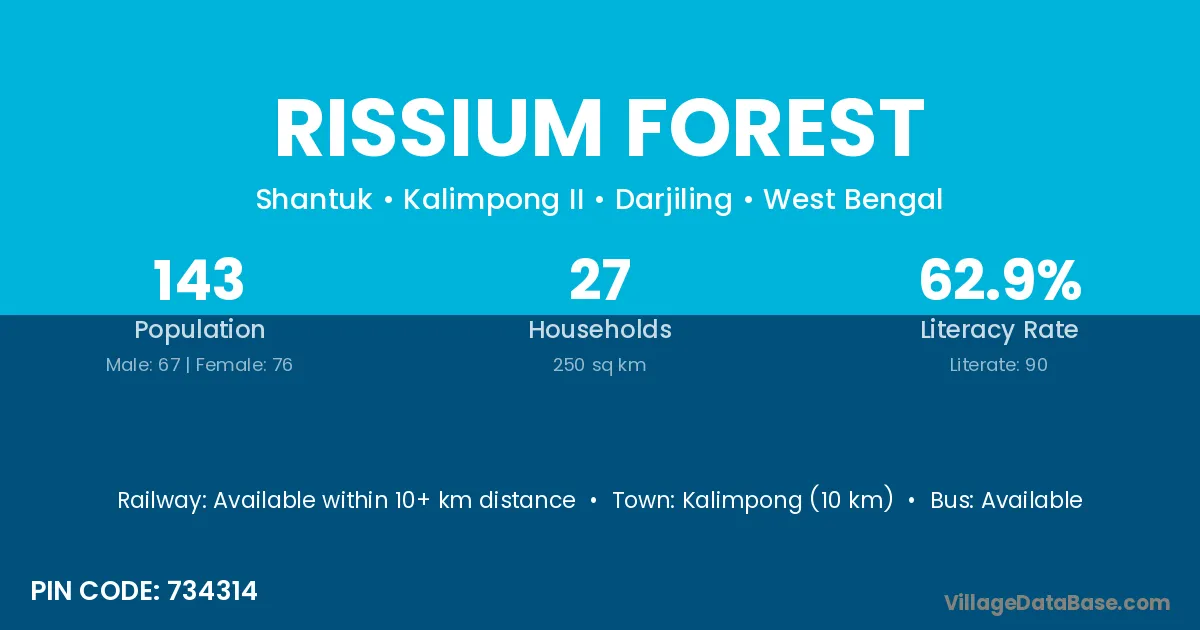 According to Census 2011 information, the village code of Rissium Forest village is 734314.