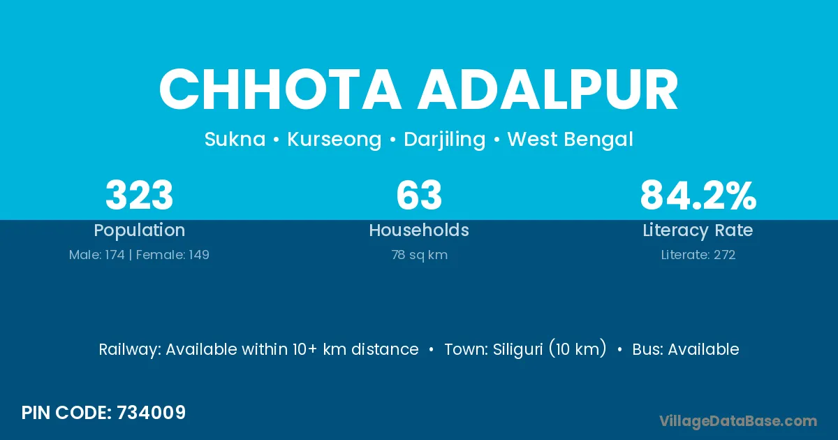 Siliguri (10 km) is the nearest town to Chhota Adalpur village for major economic activities and is located approximately 10 km away.