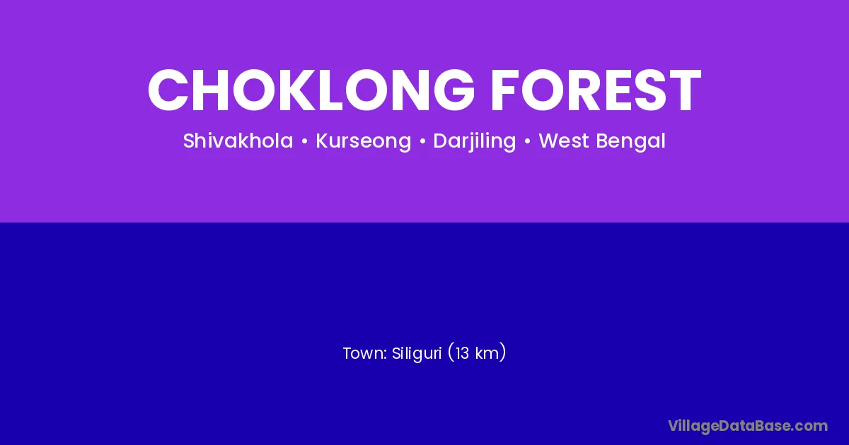 Siliguri (13 km) is the nearest town to Choklong Forest village for major economic activities and is located approximately 13 km away.