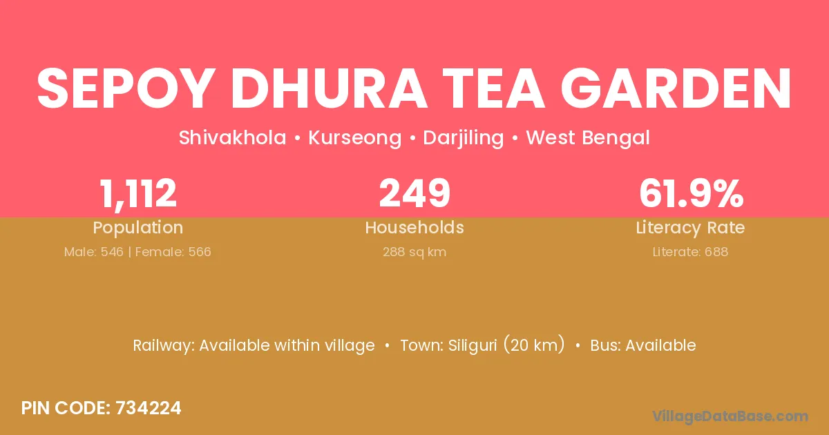 Sepoy Dhura Tea Garden village has a total population of 1,112 people, of which 546 are males and 566 are females.