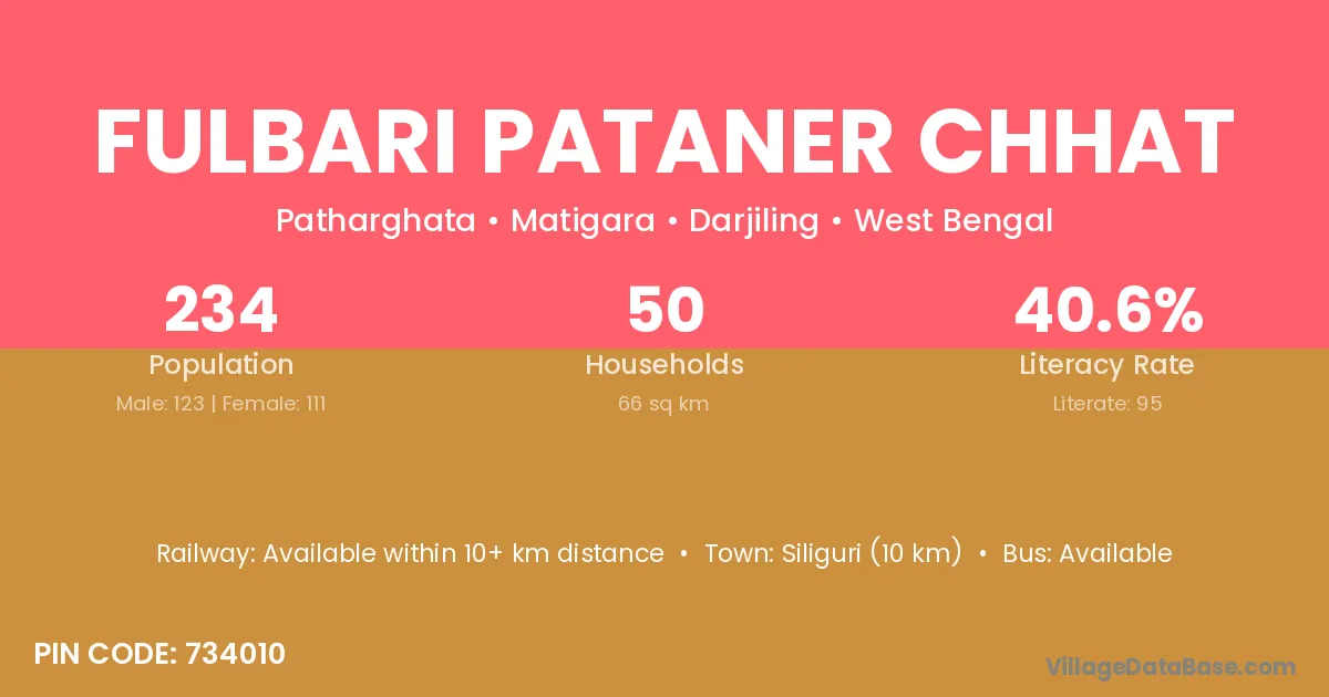 Fulbari Pataner Chhat village has a total population of 234 people, of which 123 are males and 111 are females.