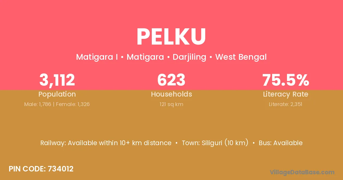 Siliguri (10 km) is the nearest town to Pelku village for major economic activities and is located approximately 10 km away.