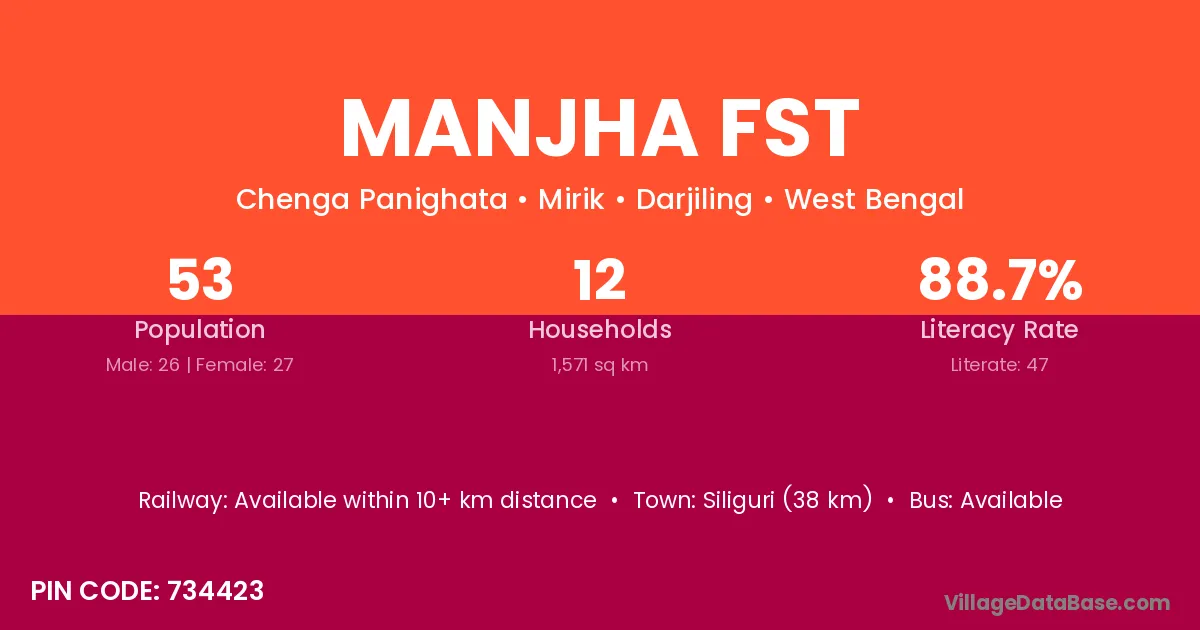 Siliguri (38 km) is the nearest town to Manjha Fst village for major economic activities and is located approximately 38 km away.