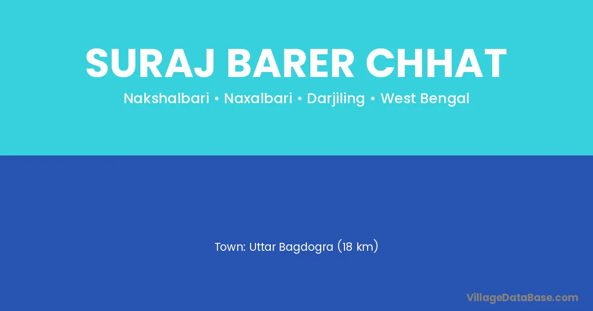 Uttar Bagdogra (18 km) is the nearest town to Suraj Barer Chhat village for major economic activities and is located approximately 18 km away.
