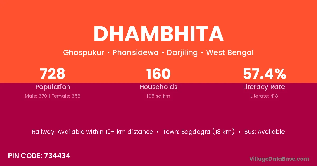 Bagdogra (18 km) is the nearest town to Dhambhita village for major economic activities and is located approximately 18 km away.