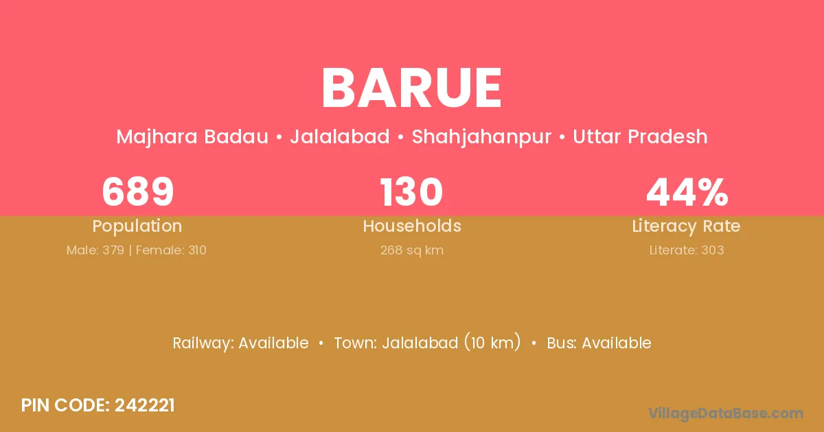 Howrah (40 km) is the nearest town to Barue village for major economic activities and is located approximately 40 km away.