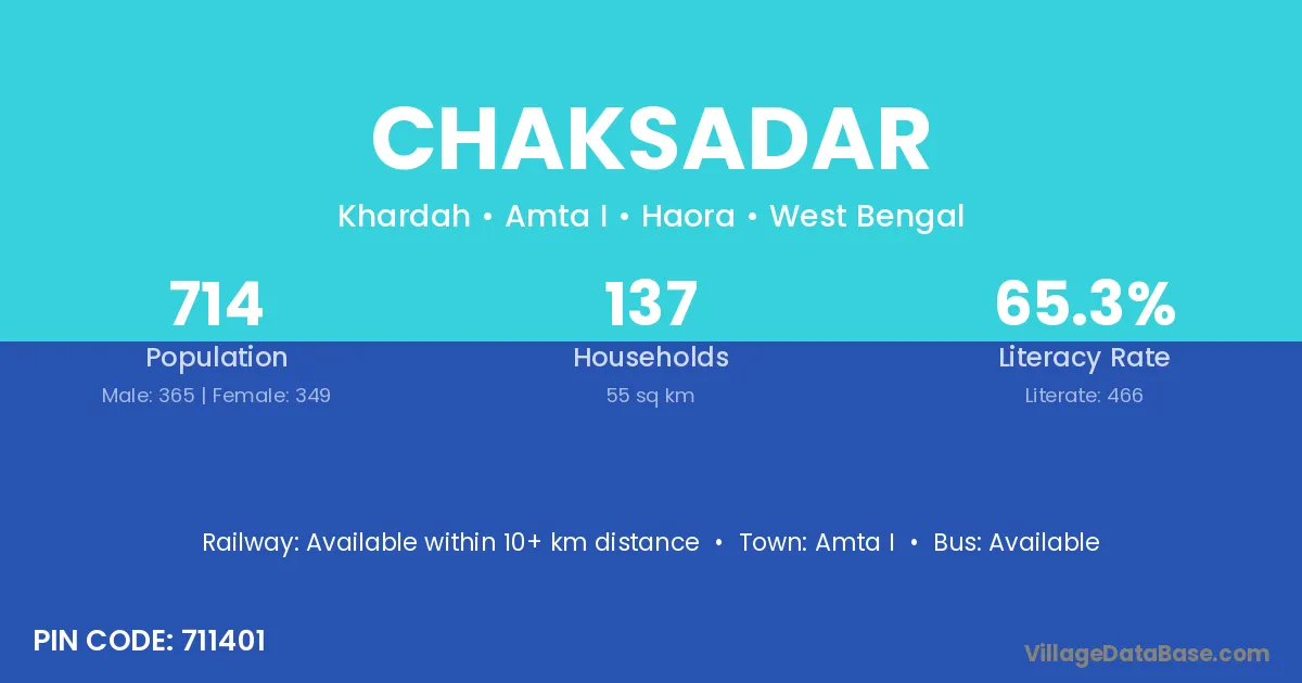 According to Census 2011 information, the village code of Chaksadar village is 711401.
