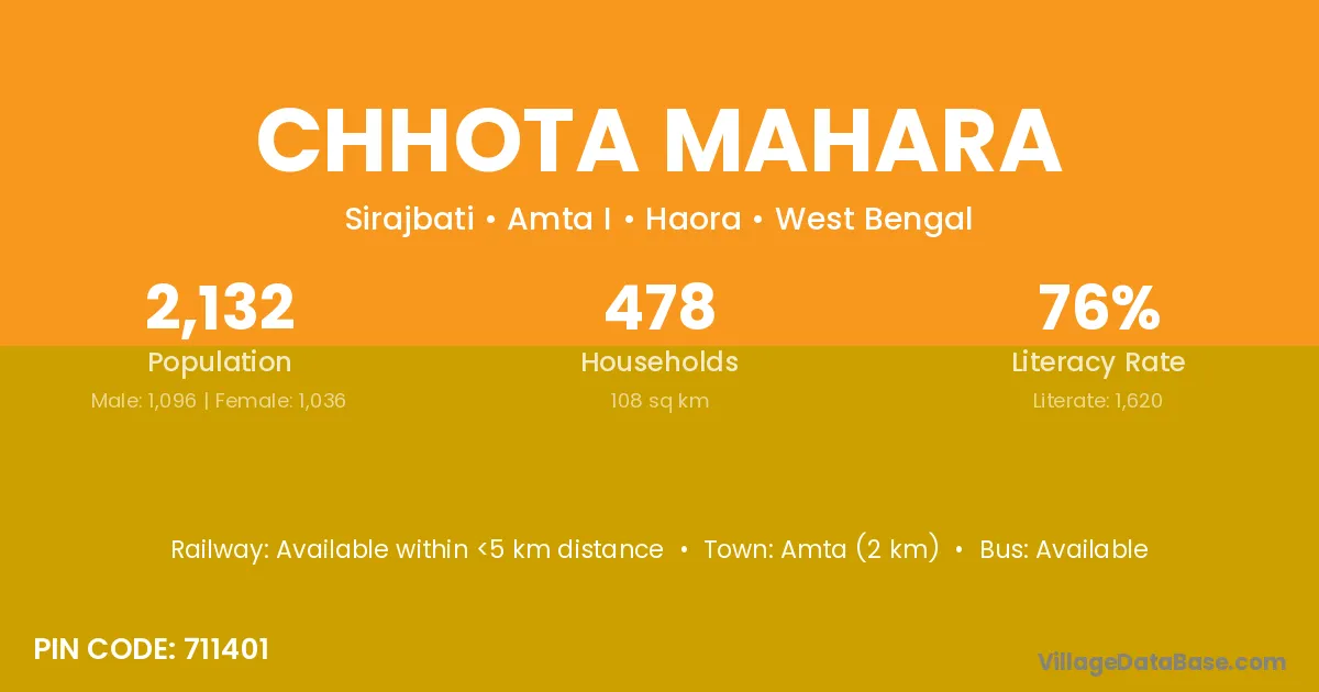 Amta (2 km) is the nearest town to Chhota Mahara village for major economic activities and is located approximately 2 km away.
