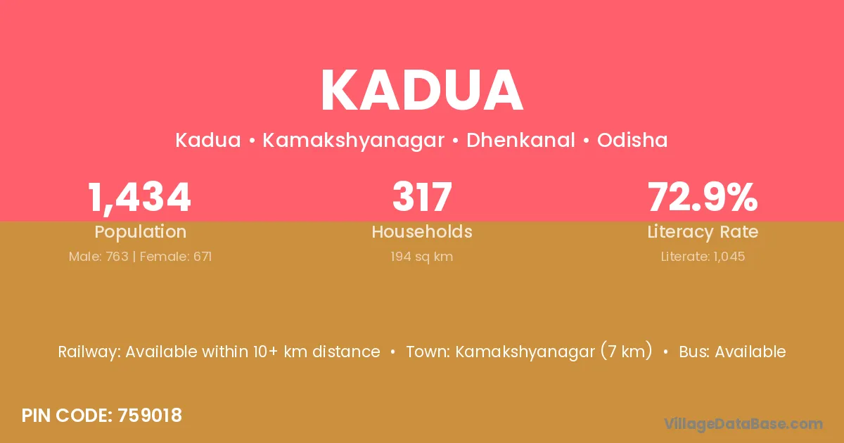 According to Census 2011 information, the village code of Kadua village is 711401.