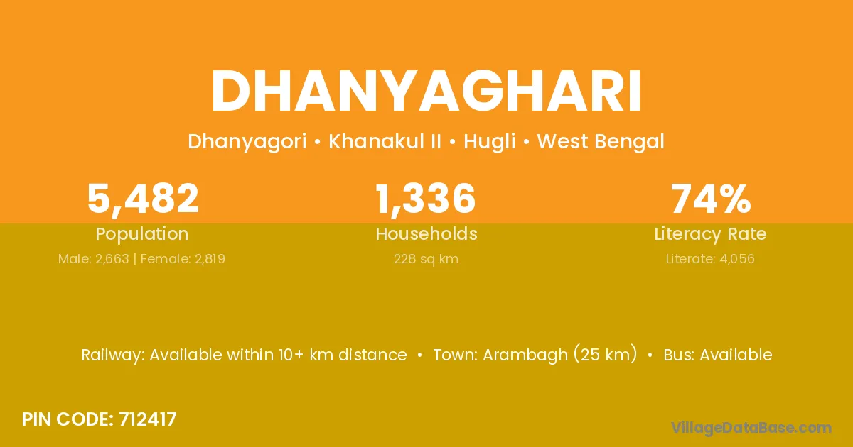 According to Census 2011 information, the village code of Dhanyaghari village is 711413.