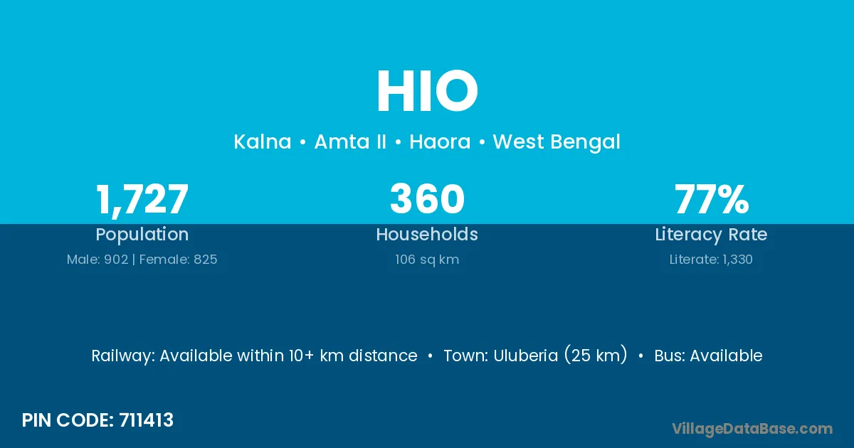Uluberia (25 km) is the nearest town to Hio village for major economic activities and is located approximately 25 km away.