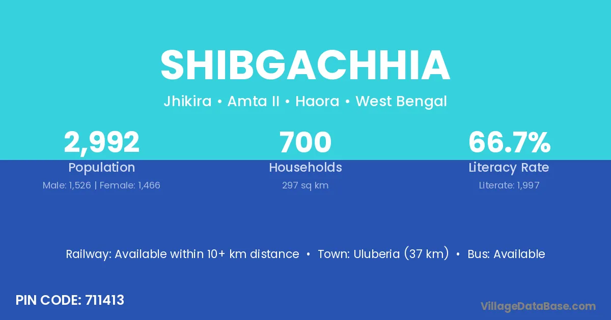 Uluberia (37 km) is the nearest town to Shibgachhia village for major economic activities and is located approximately 37 km away.