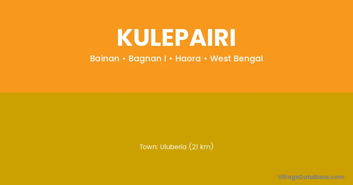 Uluberia (21 km) is the nearest town to Kulepairi village for major economic activities and is located approximately 21 km away.