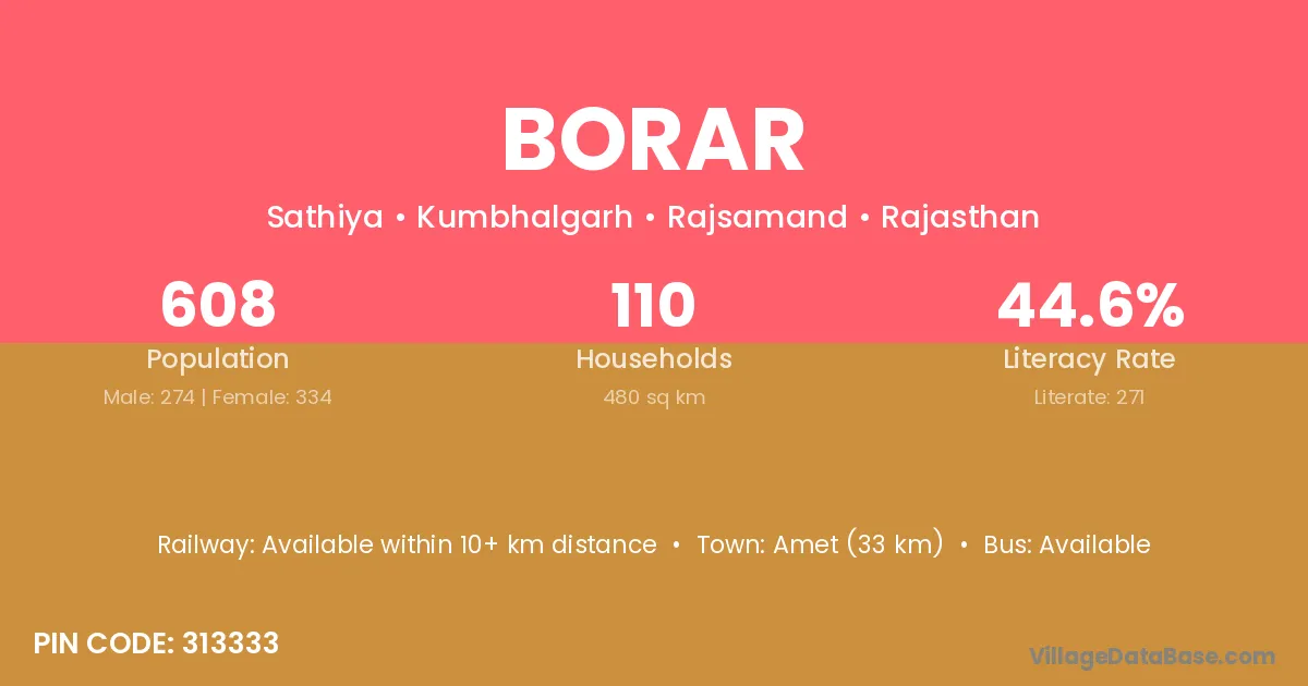 According to Census 2011 information, the village code of Borar village is 711312.