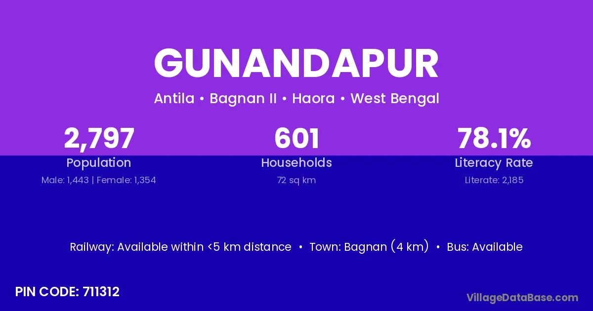 Bagnan (4 km) is the nearest town to Gunandapur village for major economic activities and is located approximately 4 km away.