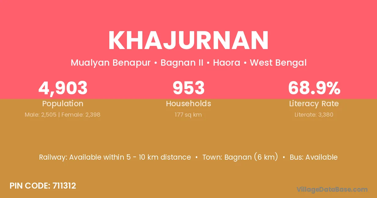 Bagnan (6 km) is the nearest town to Khajurnan village for major economic activities and is located approximately 6 km away.