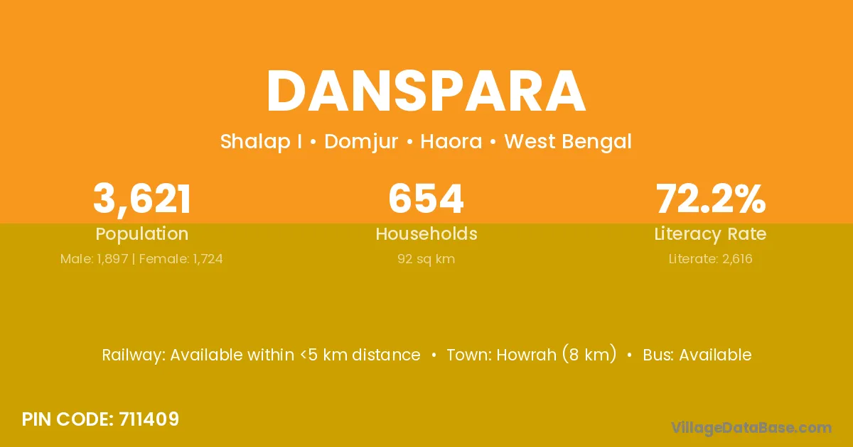 Howrah (8 km) is the nearest town to Danspara village for major economic activities and is located approximately 8 km away.