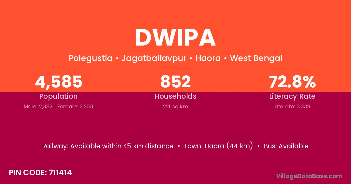 According to Census 2011 information, the village code of Dwipa village is 711414.