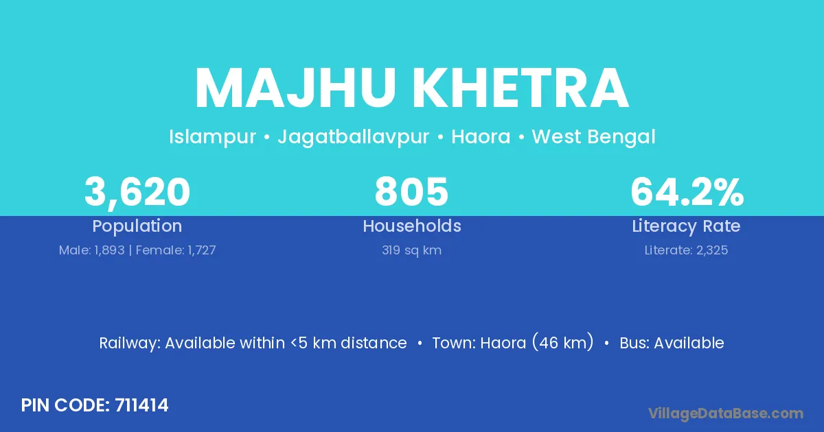 Haora (46 km) is the nearest town to Majhu Khetra village for major economic activities and is located approximately 46 km away.