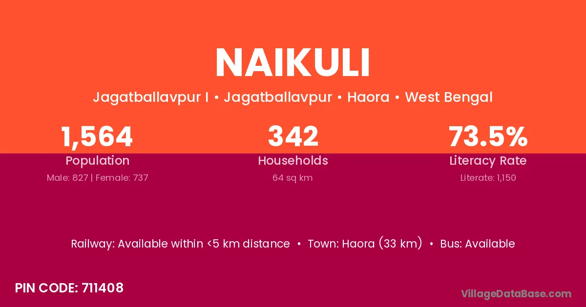 Haora (33 km) is the nearest town to Naikuli village for major economic activities and is located approximately 33 km away.