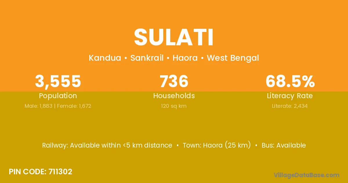 Haora (25 km) is the nearest town to Sulati village for major economic activities and is located approximately 25 km away.