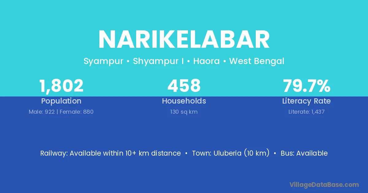 Uluberia (10 km) is the nearest town to Narikelabar village for major economic activities and is located approximately 10 km away.
