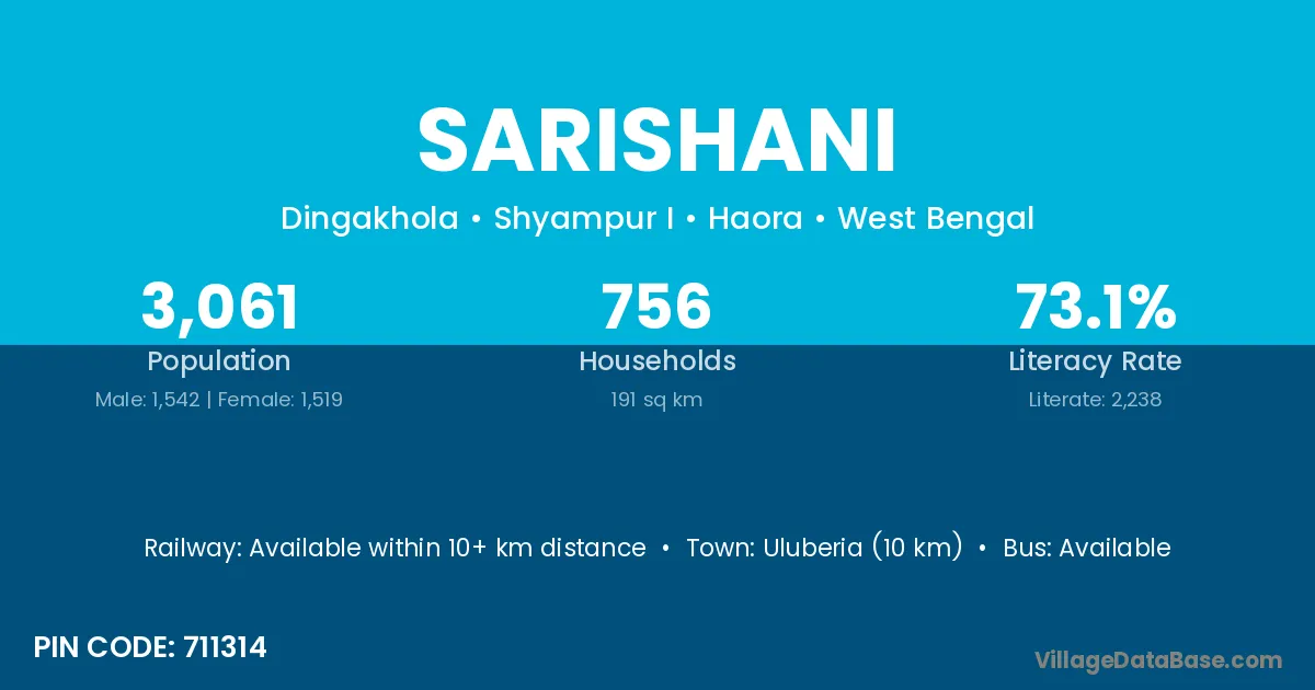 Uluberia (10 km) is the nearest town to Sarishani village for major economic activities and is located approximately 10 km away.