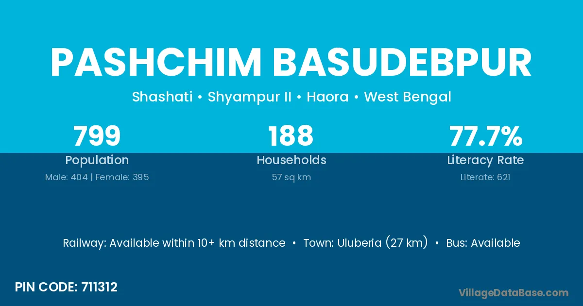 Uluberia (27 km) is the nearest town to Pashchim Basudebpur village for major economic activities and is located approximately 27 km away.