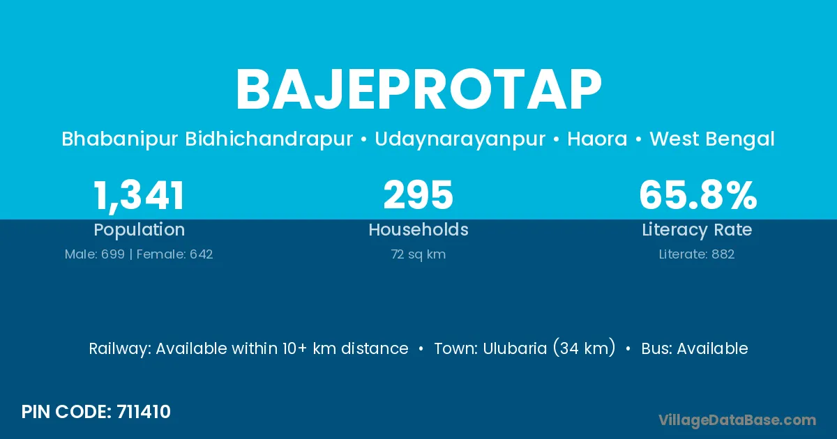 Ulubaria (34 km) is the nearest town to Bajeprotap village for major economic activities and is located approximately 34 km away.