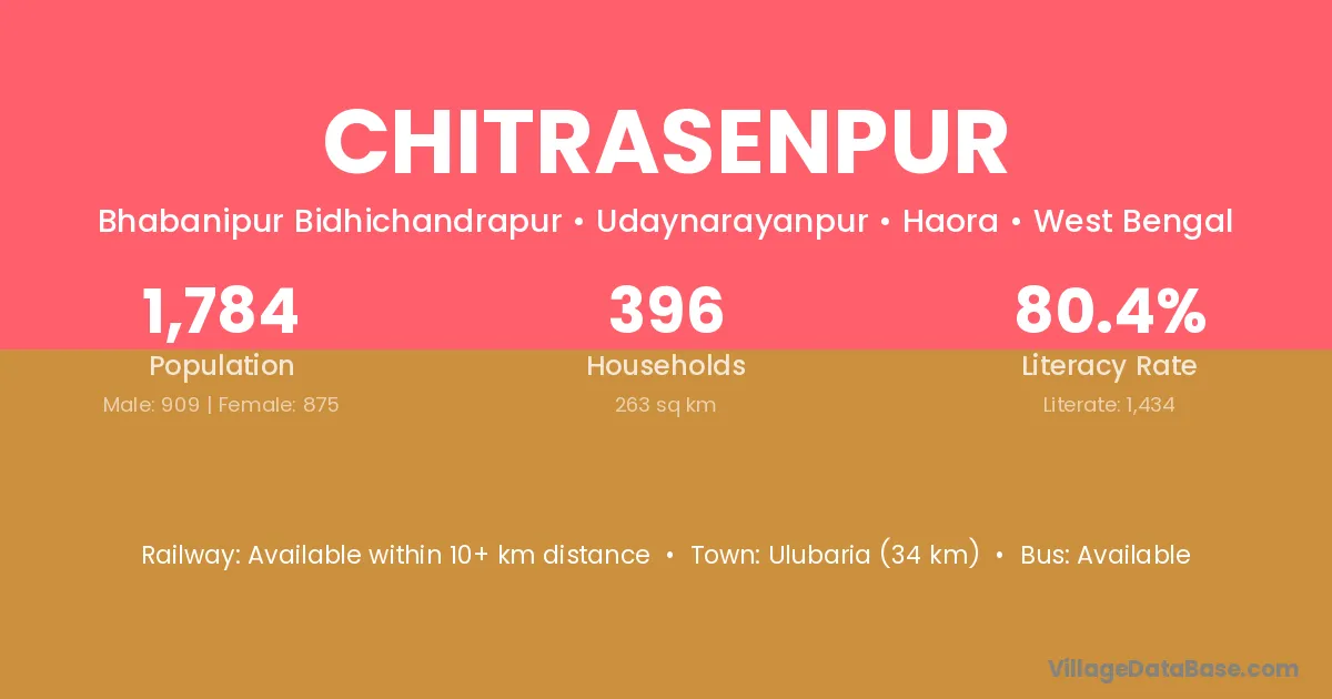 Ulubaria (34 km) is the nearest town to Chitrasenpur village for major economic activities and is located approximately 34 km away.
