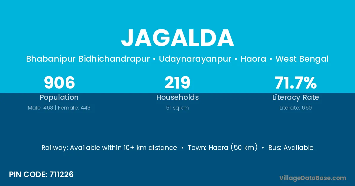 According to Census 2011 information, the village code of Jagalda village is 711226.