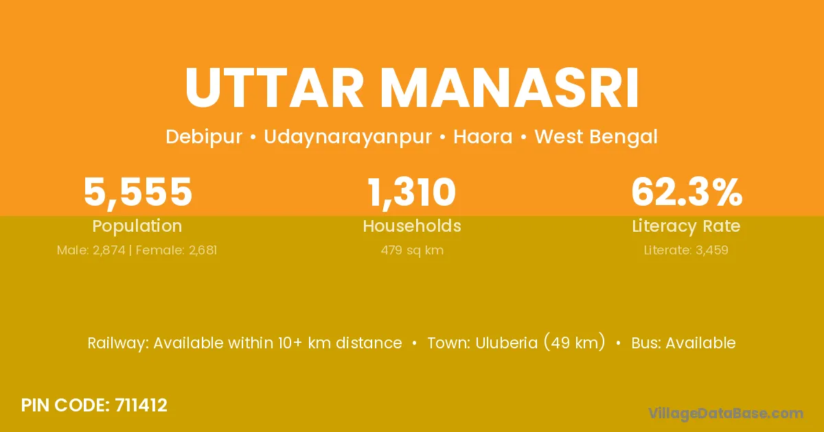 Uluberia (49 km) is the nearest town to Uttar Manasri village for major economic activities and is located approximately 49 km away.