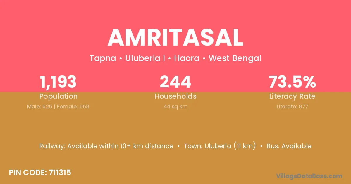 Uluberia (11 km) is the nearest town to Amritasal village for major economic activities and is located approximately 11 km away.