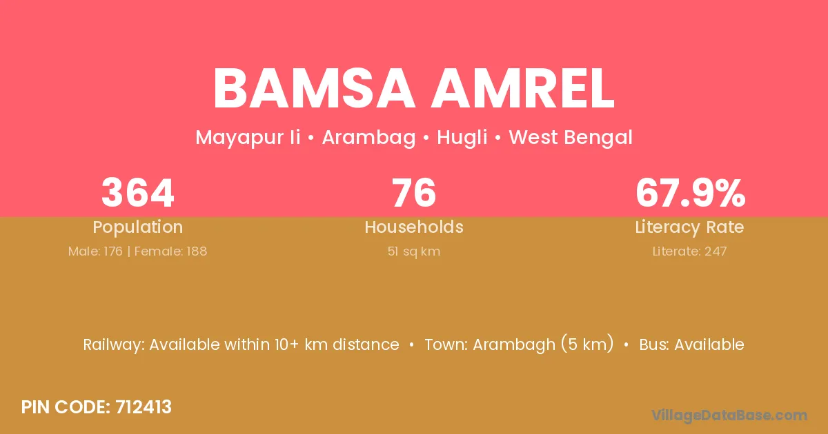 Arambagh (5 km) is the nearest town to Bamsa Amrel village for major economic activities and is located approximately 5 km away.