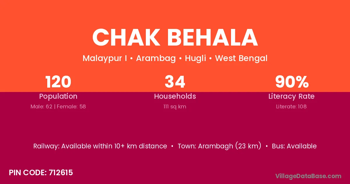 Arambagh (23 km) is the nearest town to Chak Behala village for major economic activities and is located approximately 23 km away.