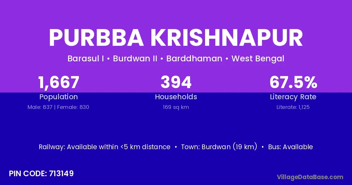 According to Census 2011 information, the village code of Purbba Krishnapur village is 712415.